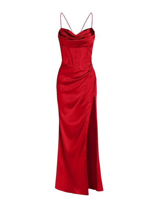 Damenkleid Satin Schnürkorsett Abendkleid Maxi
