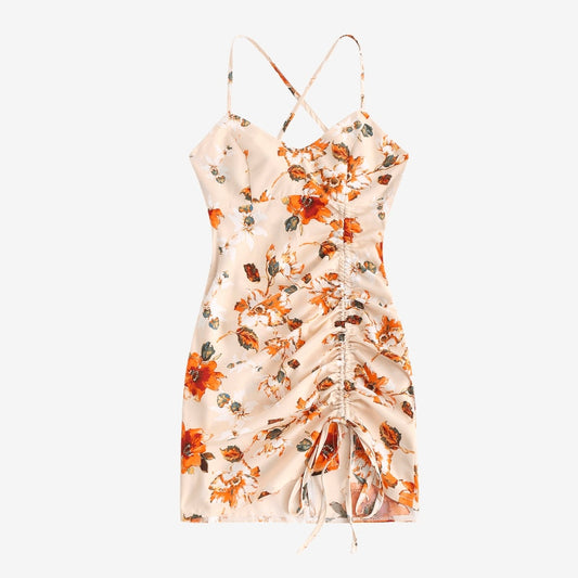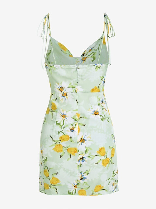 Damen Floral Spaghetti Strap Minikleid
