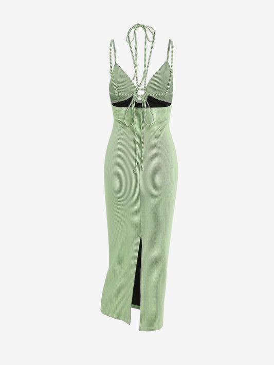 Damen Gestreiftes rückenfreies Midi-kleid